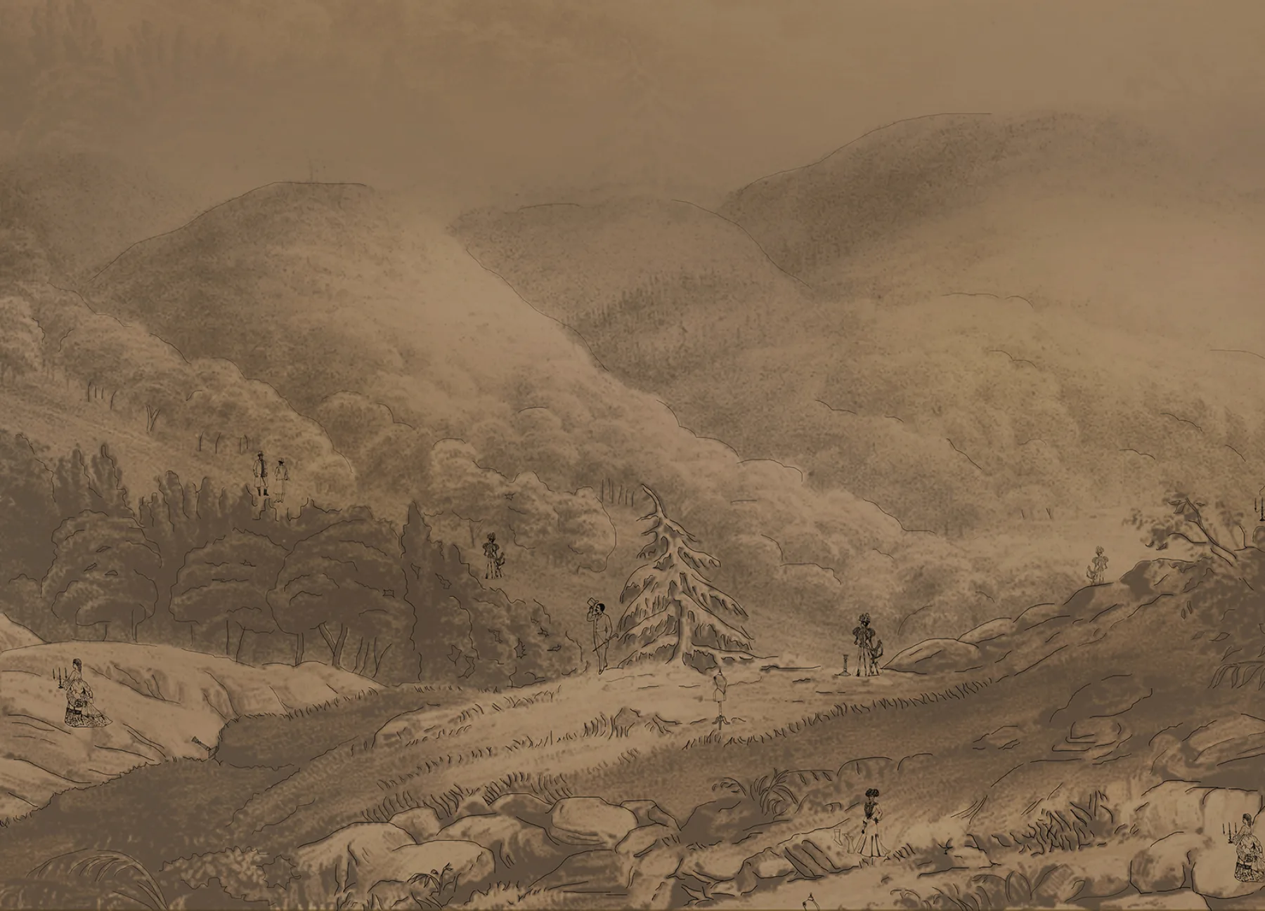 Drawing from that legacy, Xing reimagines wallpaper through a Colorado lens. Hand-sketched mountain ranges are layered with Victorian motifs, forming a landscape that reveals hidden characters and objects to those who look closely.