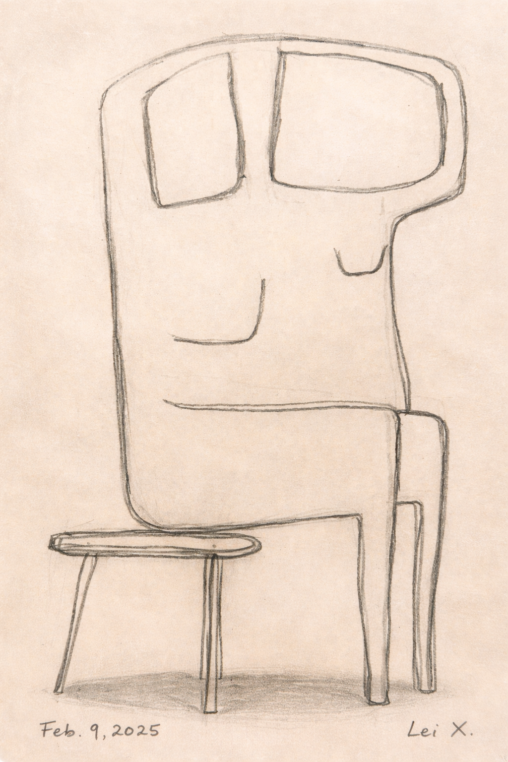 This drawing explores the figure through reduction and balance. The body is constructed as a composed form rather than a likeness, emphasizing proportion, weight, and posture. By stripping the figure to essential lines, the work focuses on presence and stillness—where form carries meaning through restraint.