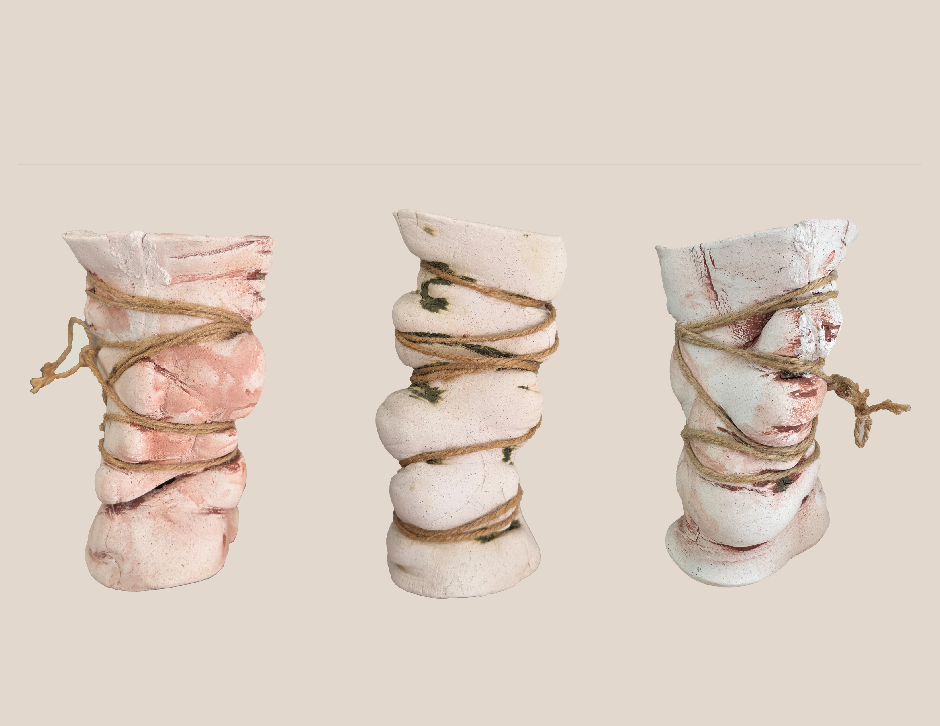 Under Tension examines how pressure shapes form. Each ceramic work is bound and compressed, allowing force, gravity, and material resistance to guide its final shape. No two pieces resolve the same way — each is a singular study in restraint, structure, and response.