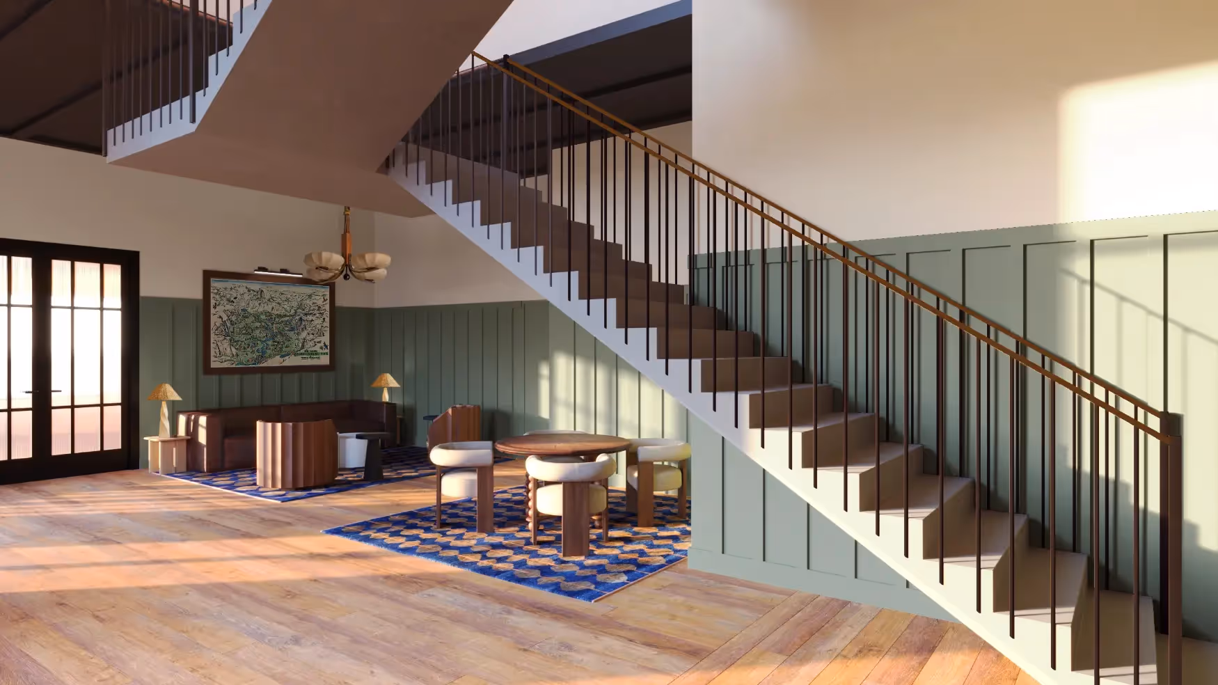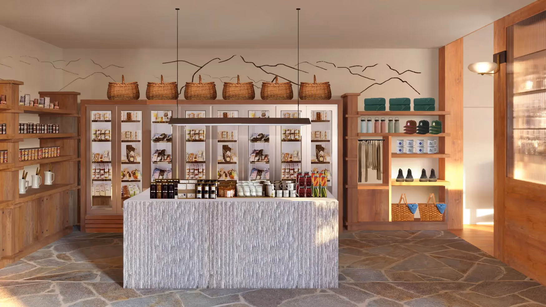 Inspired by Yosemite’s raw grandeur, the architecture embraces a modern lodge expression defined by rugged textures, natural materials, and sculpted massing. Throughout the project, custom artwork and patterning echo the iconic rock faces that define the valley, grounding the experience in its legendary landscape.